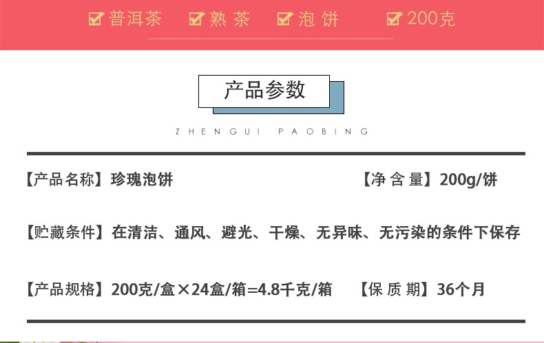 产品规格:200g/饼、24饼/箱